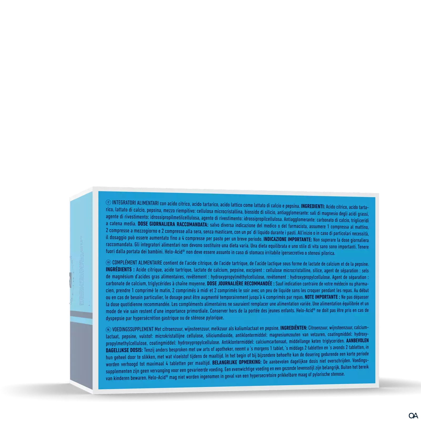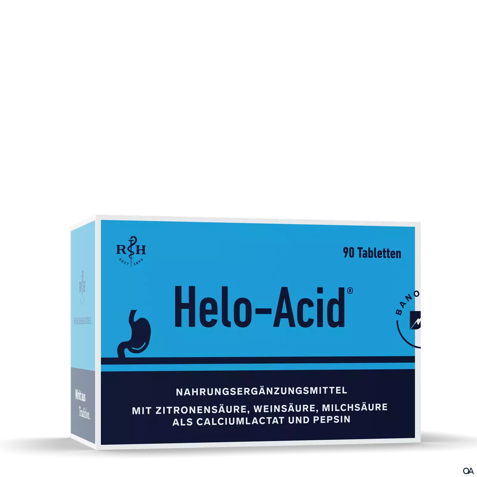 - Helo - Acid Tabletten enthalten das proteolytische Enzym Pepsin, Fruchtsäuren und Milchsäure. Die Wirkung beruht auf den verdauungsfördernden Eigenschaften der organischen Säuren und der Verdauungskraft des Magenferments Pepsin.