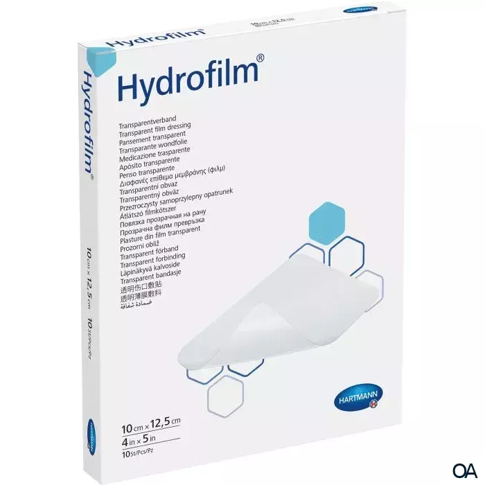 Hydrofilm ist ein steriler, selbsthaftender Transparentverband zum Schutz gegen das Eindringen von Bakterien, Verunreinigungen von außen und mechanische Irritation. Er wird für trockene oder nur leicht exsudierende, primär heilende Wunden, fast verheilte epithelisierende Wunden sowie zur Fixierung von Wundauflagen, Kathetern und Kanülen verwendet.