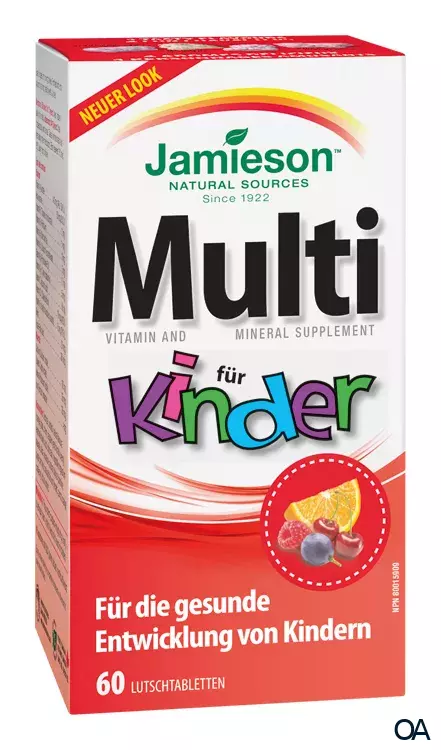 Multivitamin mit 17 Nährstoffen inklusive Eisen für die gesunde Entwicklung von Kindern. Multi für Kinder mit Eisen besteht aus einer Mischung aus Obst und Gemüse ohne Kunstfarbstoffe, Aromen und Aspartam. Lutschtabletten in der Form beliebter Tiere (Löwe, Elefant, Nilpferd und Affe) aus 4 Aromen (Orange, Traube, Himbeere und Morello-Kirsche).