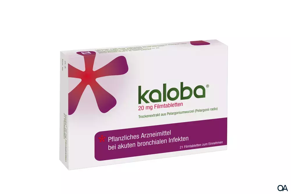Kaloba 20 mg Filmtabletten ist ein pflanzliches Arzneimittel aus der Pelargoniumwurzel (Pelargonii radix) (Kapland-Pelargonie) zur symptomatischen Behandlung von akuten bronchialen Infekten mit Husten und Schleimproduktion.