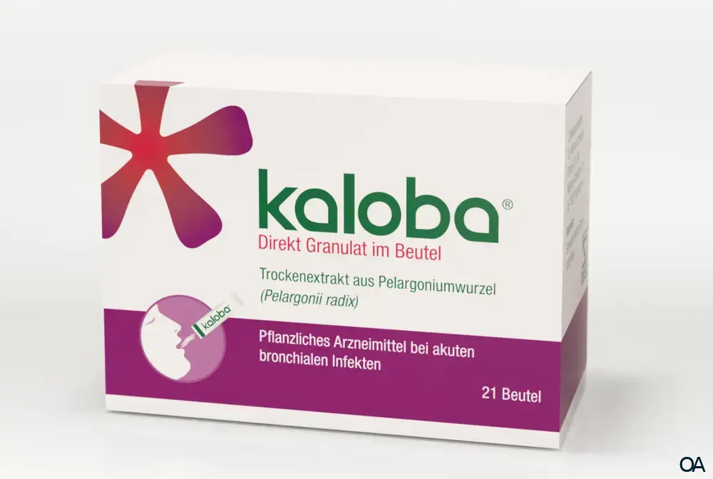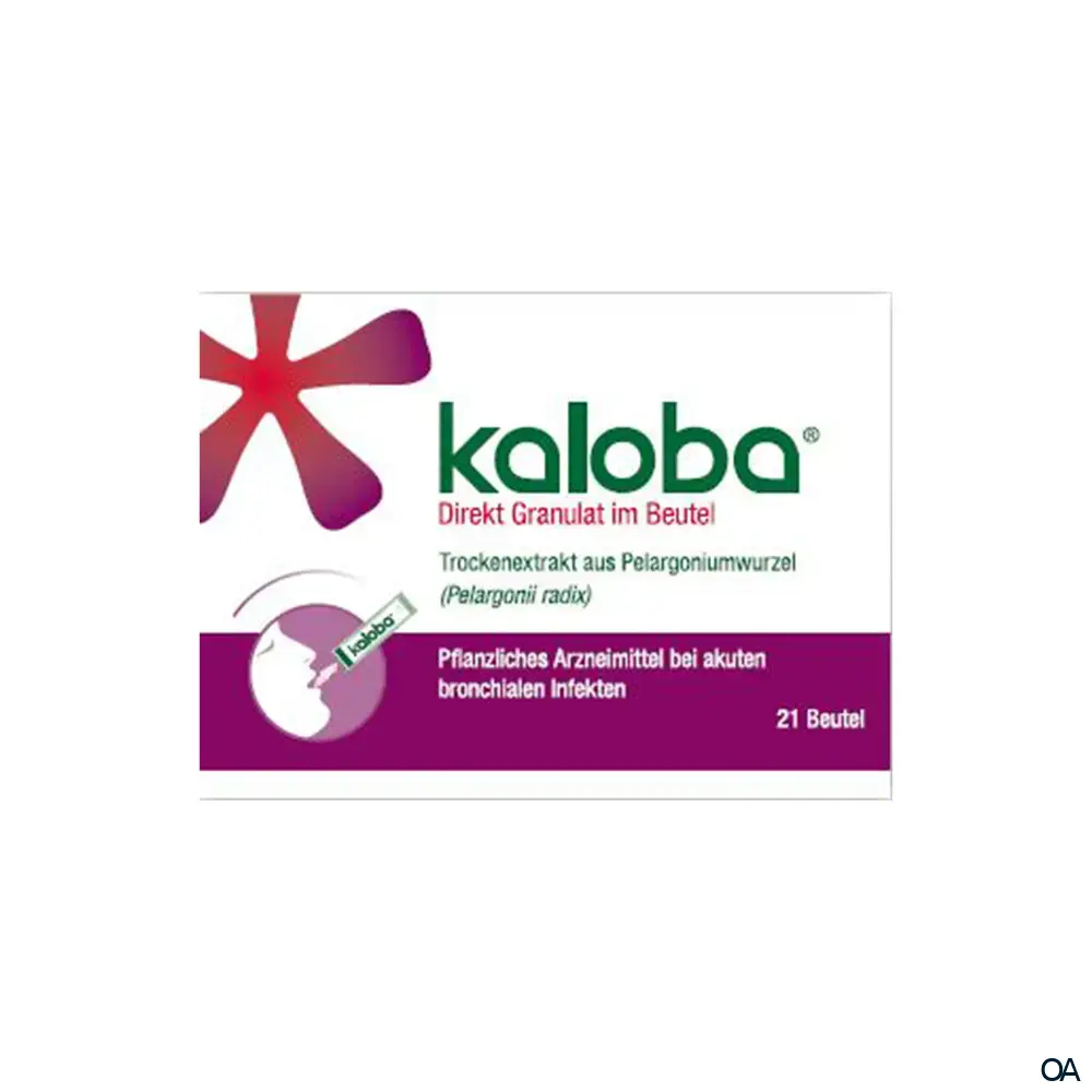 Das Kaloba® Direkt Granulat im Beutel ist ein pflanzliches Arzneimittel aus der Pelargoniumwurzel (Pelargonii radix) zur symptomatischen Behandlung von akuten bronchialen Infekten mit Husten und Schleimproduktion.