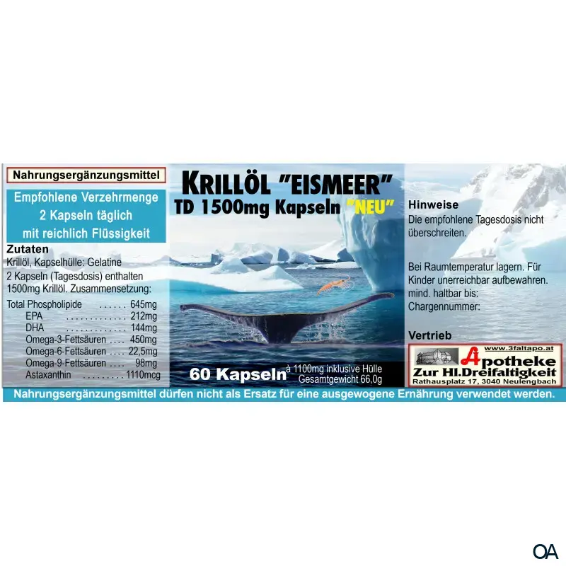 - Zutaten: Krillöl, Kapselhülle: Gelatine.