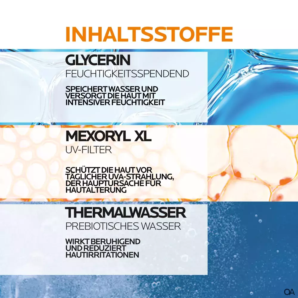 - Mit der Filter-Technologie Mexoplex® (bestehend aus den Filtern Mexoryl® SX und Tinosorb S): durch einen wesentlich höheren UVA-Schutz bei dem jeweiligen UVB-Schutz.