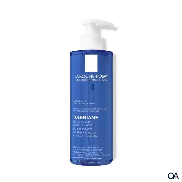 TOLERIANE Gel-zu-Schaum Double Cleanser sorgt für eine intensive Tiefenreinigung und beseitigt dank dem Aminosäuren-Komplex und milden Tensiden Unreinheiten, Make-up und überschüssigen Talg. Gleichzeitig stellt der Gesichtsreiniger den Feuchtigkeitsgehalt der Haut wieder her. Glycerin und Ceramide schützen vor Feuchtigkeitsverlust und haben eine feuchtigkeitsspendende und beruhigende Wirkung. Die leichte Formulierung des Gesichtsreinigers von La Roche Posay ist parfümfrei und bringt den pH-Wert der Haut nicht aus dem Gleichgewicht. So hinterlässt TOLERIANE Gel-zu-Schaum Double Cleanser ein hydratisiertes Hautgefühl und eignet sich optimal für sehr empfindliche Haut (auch um die Augenpartie).