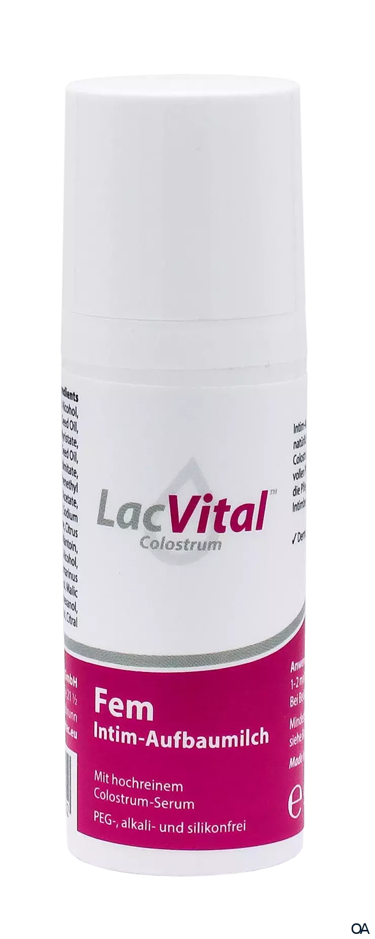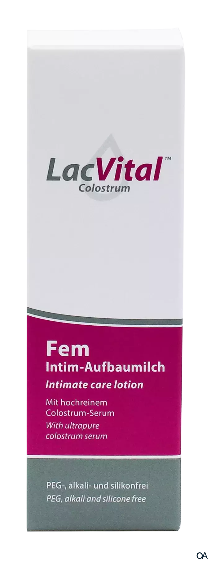 LacVital™ Colostrum FEM Intim-Aufbaumilch ist eine Intimpflege Lotion mit hochreinem Colostrum-Serum und wertvollen Pflanzenauszügen.