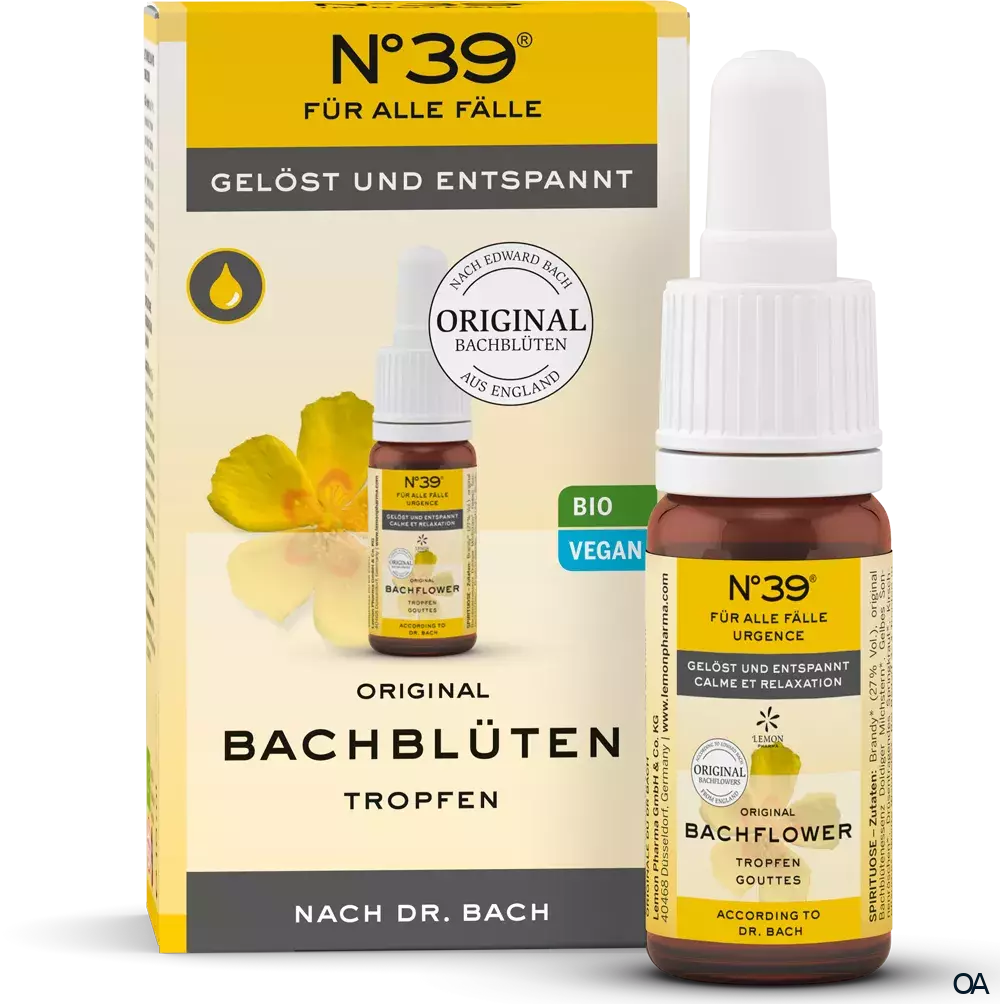Lemon Pharma N°39 Liquid Bachblüten Tropfen mit der Original Mischung nach Dr. Bach. Nehmen Sie sich Zeit und entspannen Sie sich von den kleinen Belastungen des Alltags.