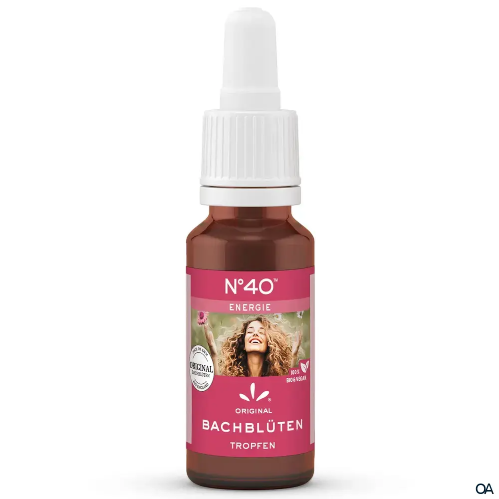 Die Lemon Pharma N°40 Energie Bachblüten Tropfen enthalten eine Bio-Tropfenmischung mit den Original-Bachblüten (Wild Rose, Olive, Elm, Hornbeam) von Dr. Bach.