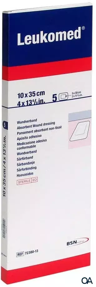 Leukomed® ist ein steriler Wundverband aus querelastischem Polyestervlies und passt sich daher auch stark konturierten Körperpartien sehr gut an. Zur Anwendung nach chirurgischen Eingriffen oder Unfallverletzungen.