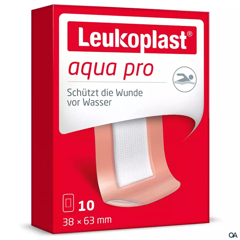 Leukoplast aqua pro deckt die Wunde beim Baden, Duschen oder Sport sicher ab. Der Wundschnellverband ist dabei unauffällig, lindert Schmerzen und schützt vor Schmutz und Reibung. Die rasche Abheilung der Wunde wird durch die Aufnahme von Feuchtigkeit begünstigt. Leukoplast aqua pro ist atmungsaktiv und schützt vor Hautmazerationen. Leukoplast aqua pro ist mit einem hypoallergenen Acrylatkleber beschichtet.