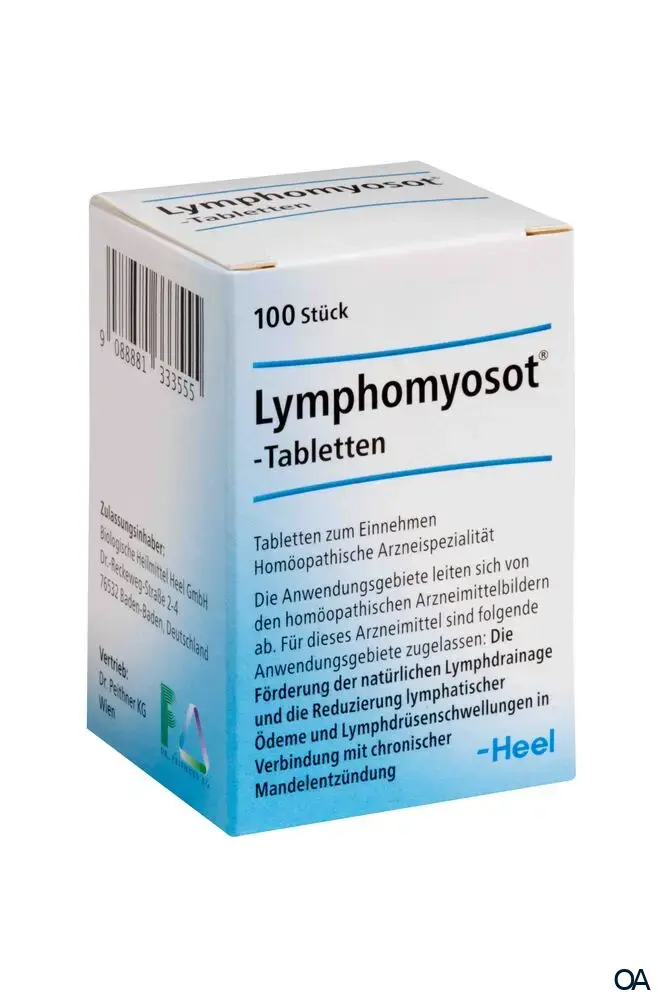 Lymphomyosot® Tabletten sind ein homöopathisches Kombinationsarzneimittel zur Reduzierung lymphatischer Ödeme, Förderung der natürlichen Lymphdrainage und Lymphdrüsenschwellungen in Verbindung mit chronischer Mandelentzündung.
