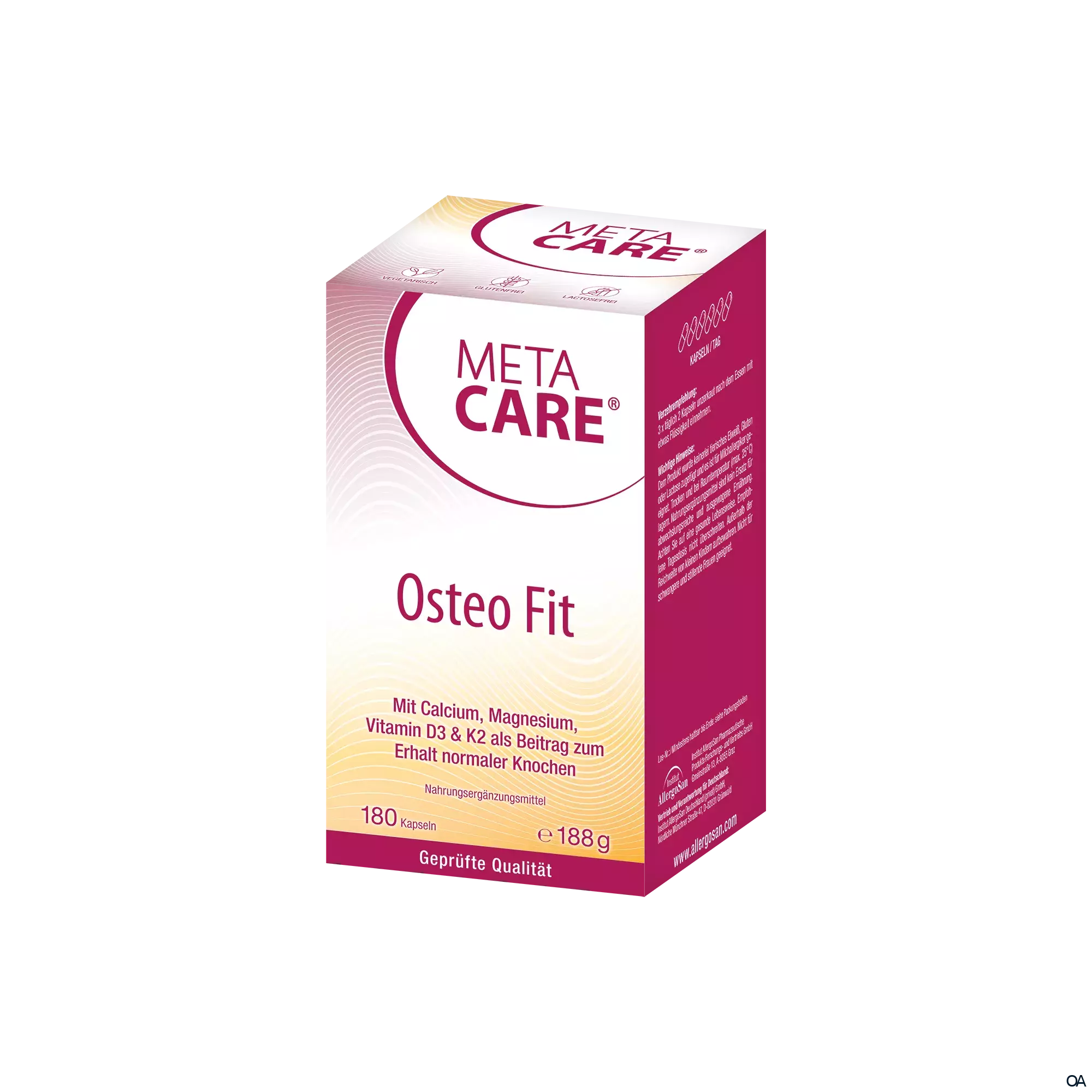 - META-CARE® Osteo Fit bietet eine umfassende Kombination aus den wichtigen Knochen-Nährstoffen Calcium, Magnesium, Vitamin D3 & K2, ergänzt durch Bor. Die Mineralstoffe Calcium und Magnesium tragen wesentlich zum Erhalt normaler Knochen und Zähne bei. Ein erhöhter Bedarf kann im Wachstum, durch die Einnahme bestimmter Arzneimittel oder bei intensiver körperlicher Belastung entstehen.