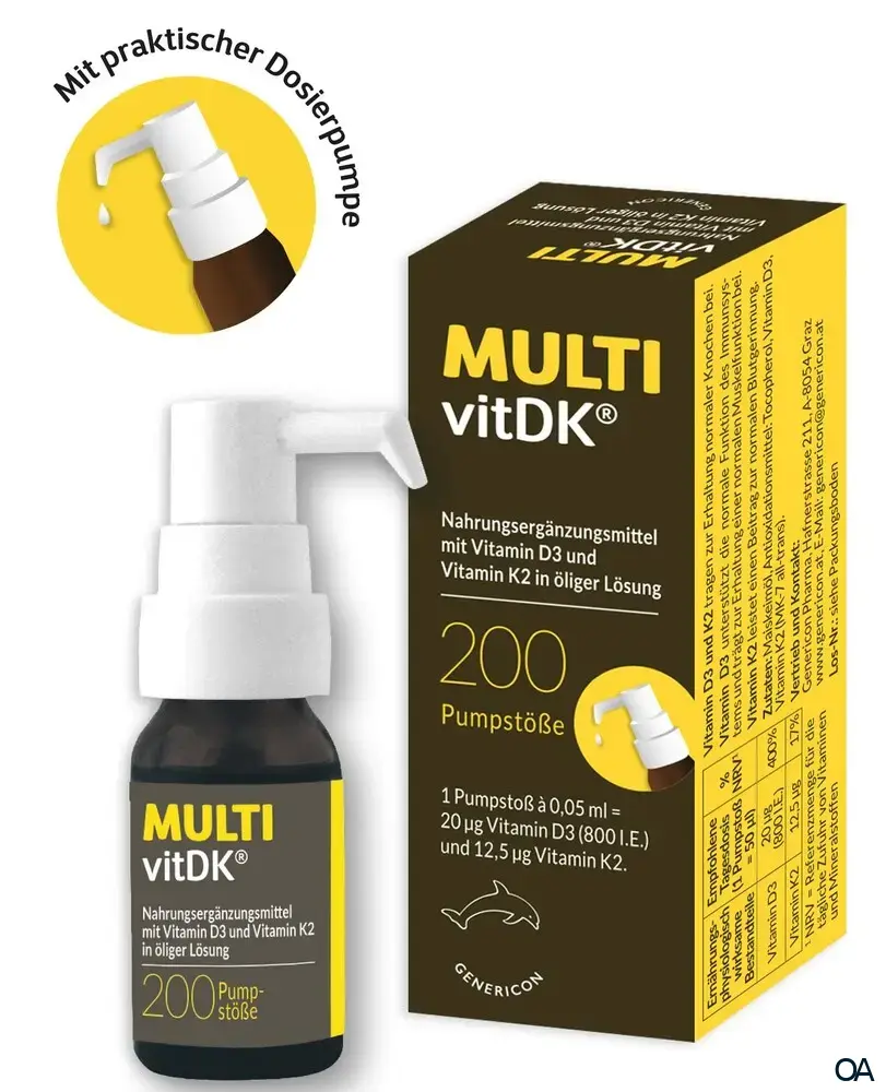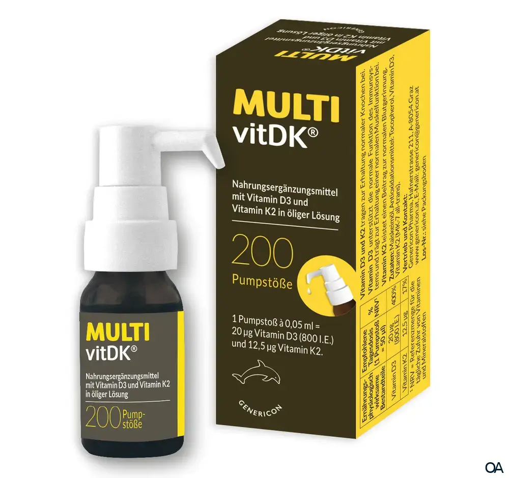 - Die beiden fettlöslichen Vitamine D3 und K2 sind in hochreinem Maiskeimöl gelöst. MULTIvitDK® ist geschmacksneutral.