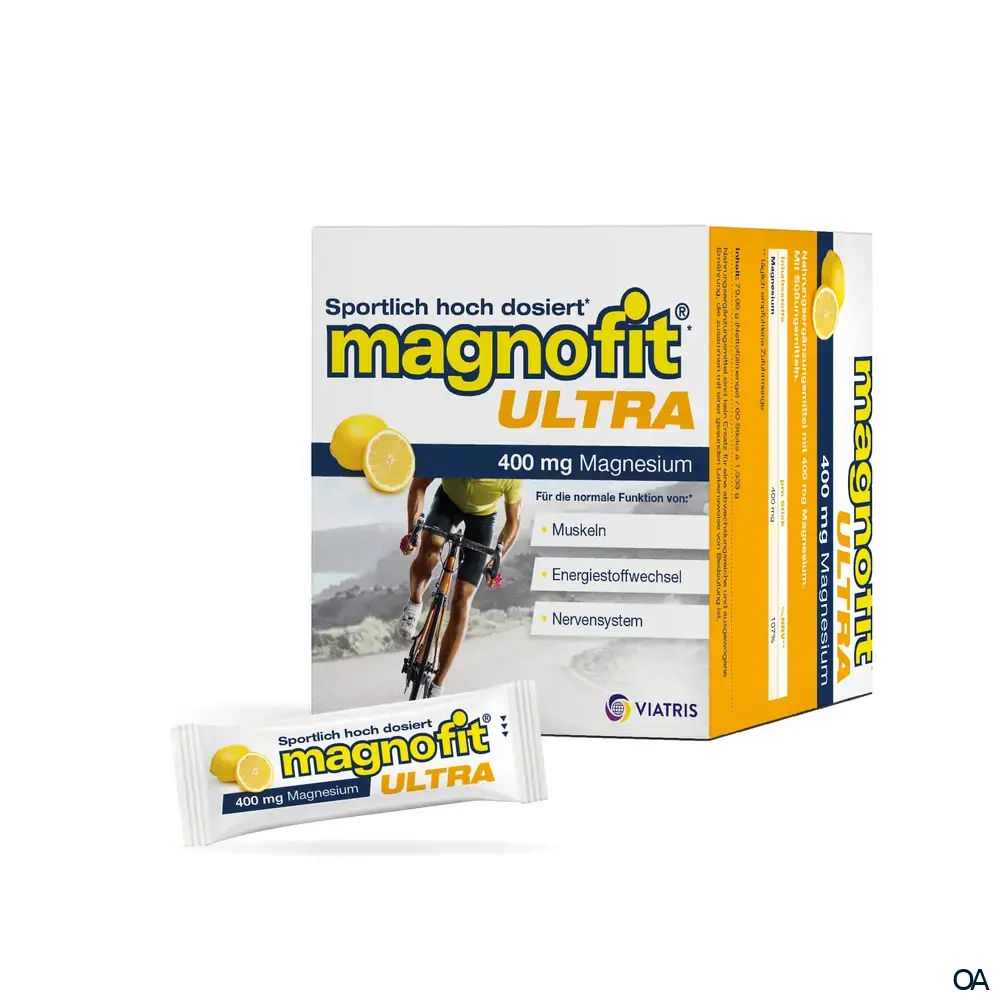 Magnofit® ULTRA Direktgranulat Sticks sind ein Nahrungsergänzungsmittel mit erfrischendem Zitronen Geschmack und 400 mg Magnesium pro Stick. Praktisch für unterwegs und ideal für längere Trainingseinheiten.