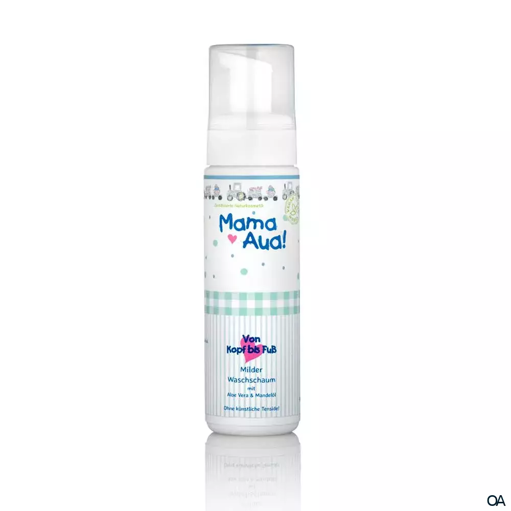 Das Mama Aua! Von Kopf bis Fuß Waschmousse ist ein milder Waschschaum mit Aloe Vera und Mandelöl für eine sanfte Körperhygiene. Ohne künstliche Tenside.