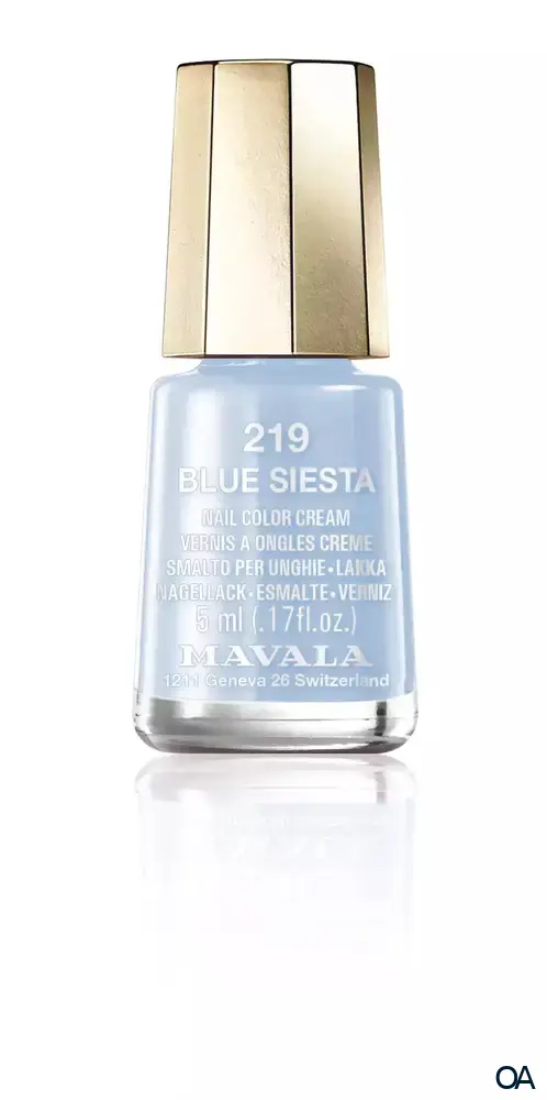 Entdecke den Mavala Blue Siesta 219 Nagellack: Ein intensiver, langanhaltender Blauton für perfekte Nägel. Qualität aus der Schweiz – pflegend, widerstandsfähig und brillant glänzend.