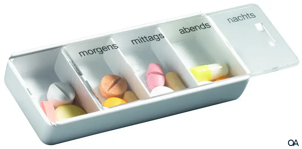 - Medikamentendosierer mit 4 Fächern/Tageszeiten
