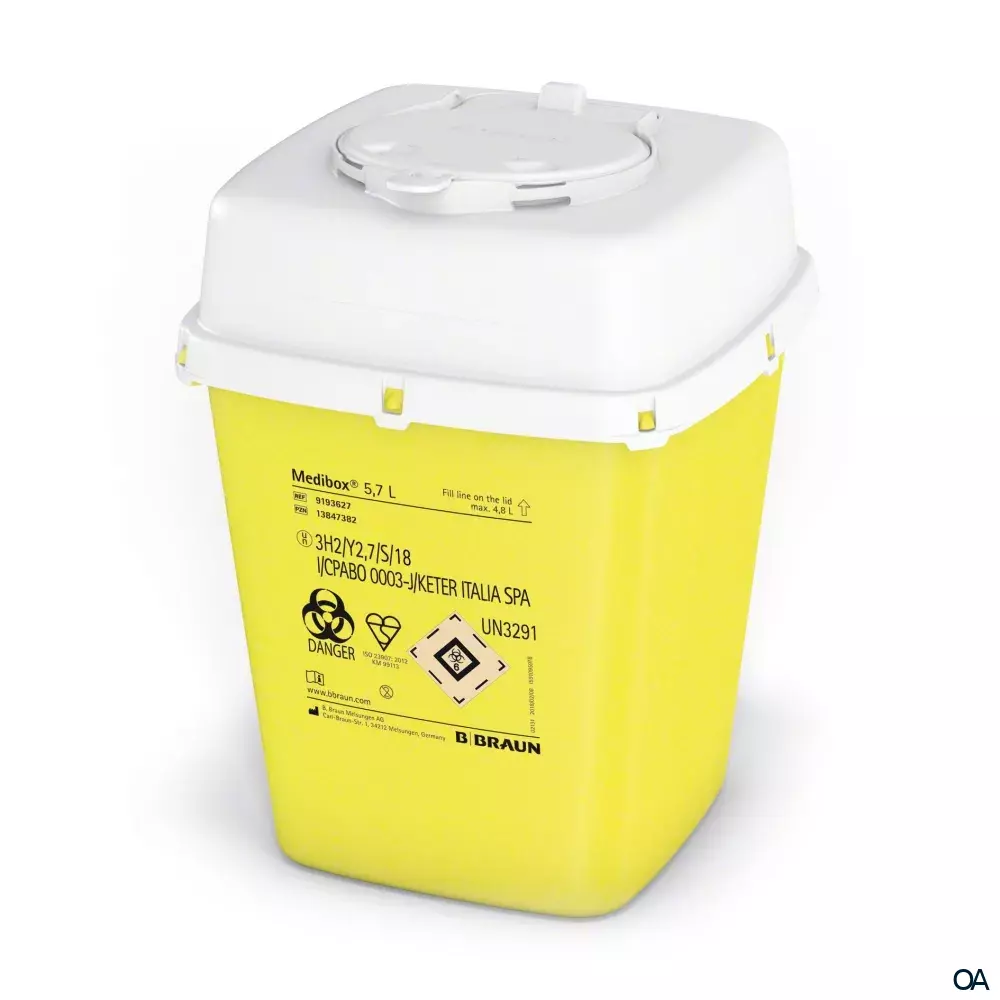 Der Medibox® Entsorgungsbehälter eignet sich ideal für eine sichere Entsorgung von scharfen und spitzen Gegenstände im medizinischen Umfeld.