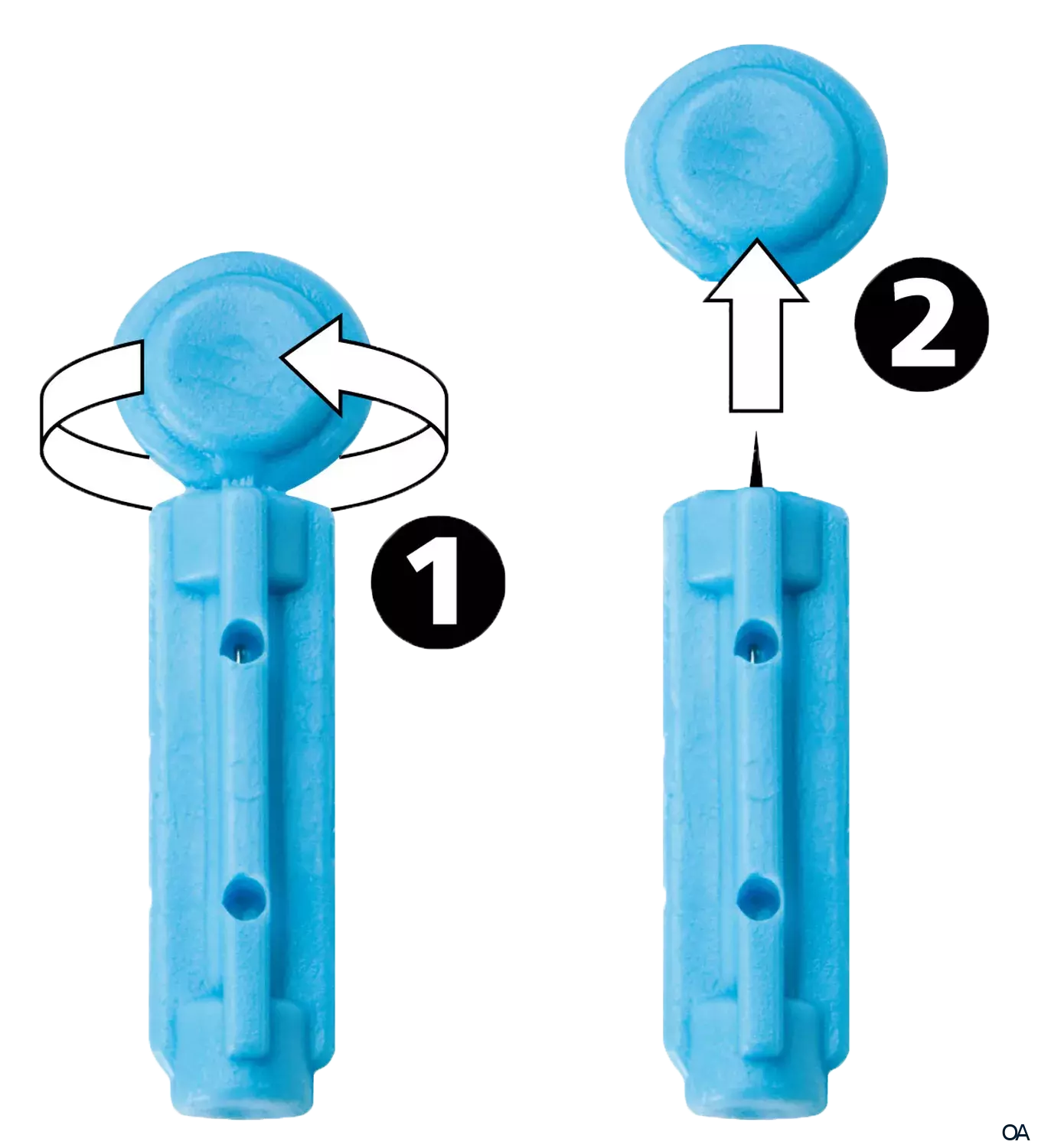 - Drehen Sie die Schutzhülse von der Lanzette vorsichtig ab.