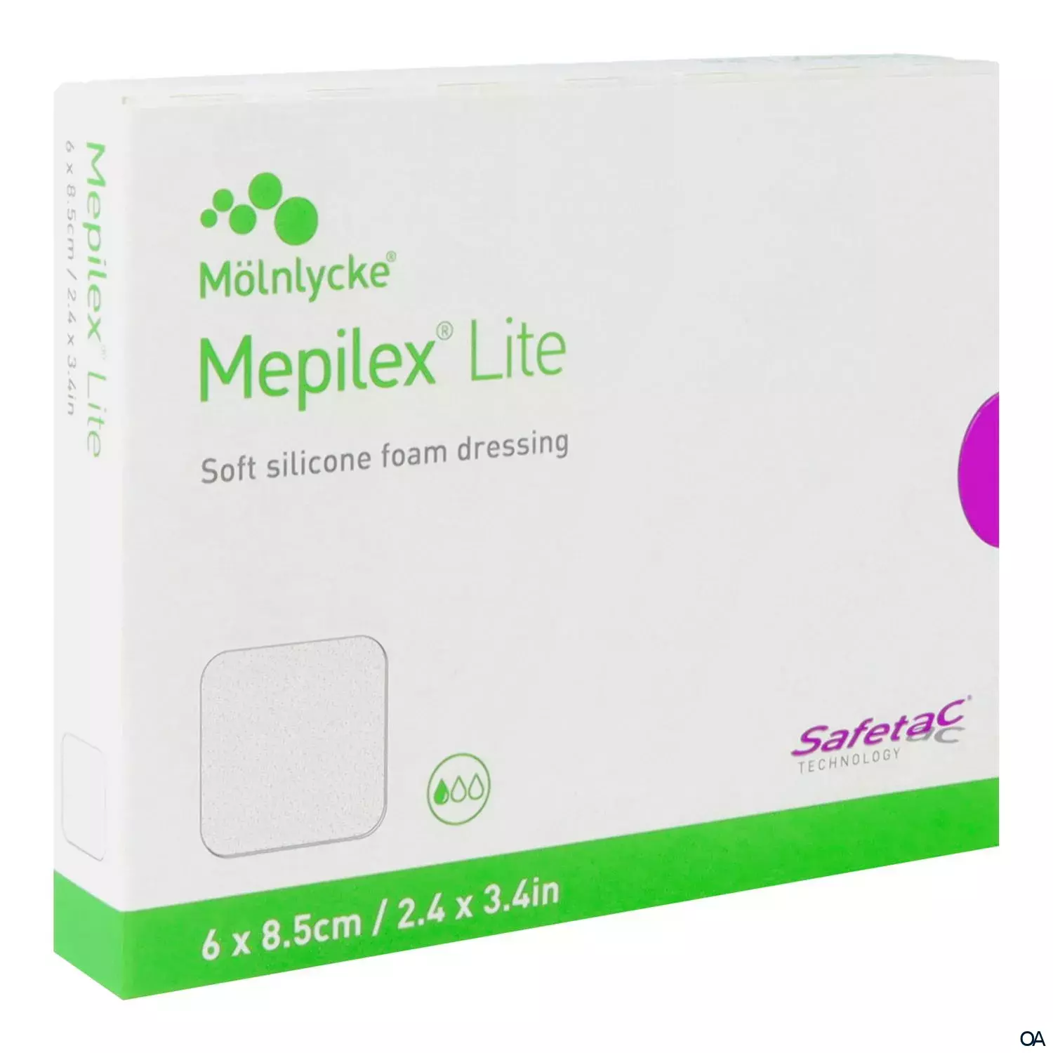 Mepilex Lite ist ein hoch anpassungsfähiger Verband, der Wundexsudat effektiv absorbiert und das feuchte Wundmilieu aufrecht erhält. Dank Safetac werden die Wundränder versiegelt, wodurch ein Auslaufen von Exsudat auf die wundumgebende Haut verhindert und das Mazerationsrisiko minimiert wird. Aufgrund der Safetac Eigenschaften kann der Verband atraumatisch und schmerzarm gewechselt werden.