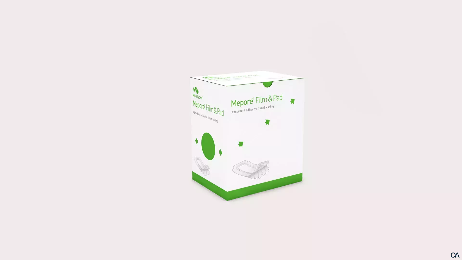 Mepore® Film & Pad ist ein absorbierender, selbsthaftender Folienverband der für die Behandlung von schwach bis mäßig exsudierenden Wunden wie chirurgische Wunden, Schnittwunden und Abschürfungen vorgesehen ist.