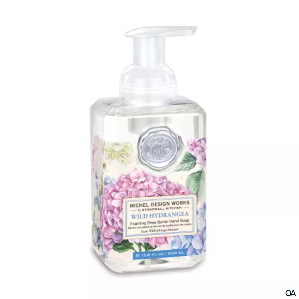 Verwöhnen Sie Ihre Sinne mit dem luxuriösen Michel Design Works Wild Hydrangea Seifenschaum. Er verwandelt sich in cremig-festen Schaum, der Ihre Hände sanft reinigt und mit dem Duft von frisch geschnittenen Hortensien und wilden Wiesenblumen verwöhnt.