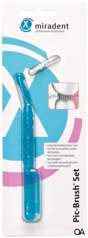 Die Pic-Brush® Interdentalbürste ist ideal zur Reinigung von Brackets, Zahnspangen, Brücken und vor allem Zahnzwischenräumen. Der 120°-Winkel des konischen Einführstutzens garantiert eine optimale und sichere Anwendung. Zusätzlich ermöglicht der Back-Pic mit der alternativen Aufsteckmöglichkeit eine bessere Reinigung der Frontzähne.