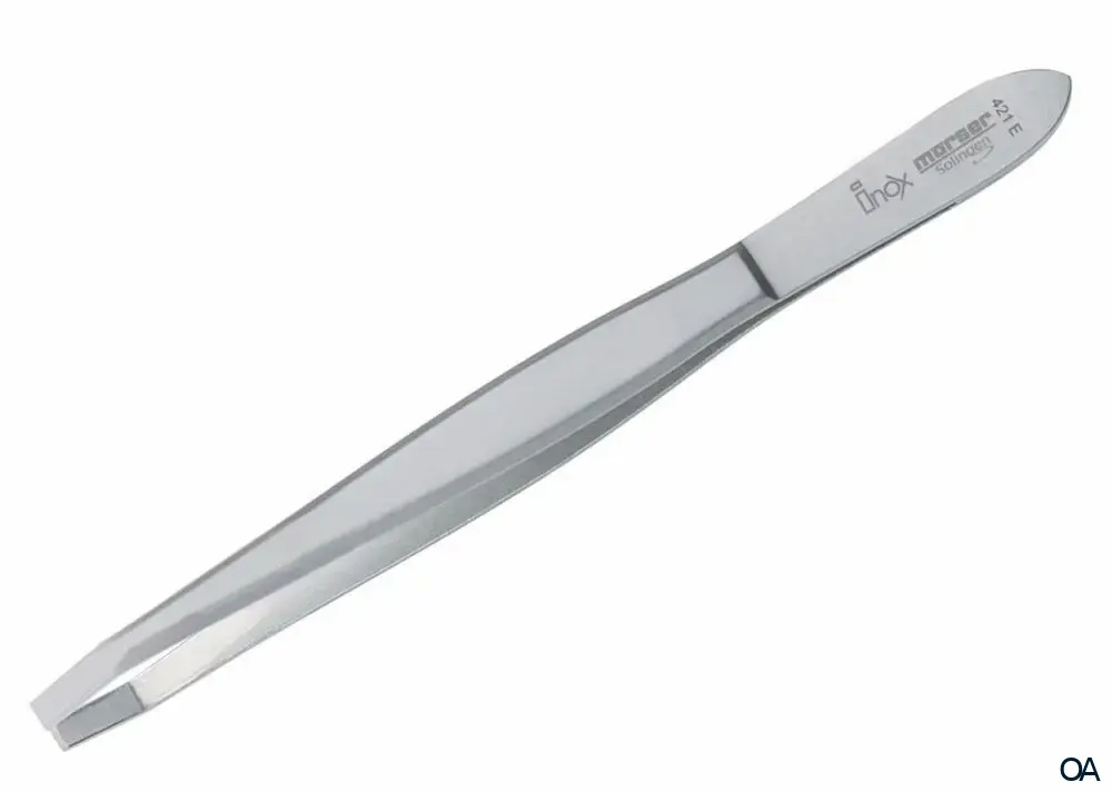 Perfekt geformte Augenbrauen mit der gebogenen Mörser Solingen Pinzette 421E. Der rostfreie Inox-Stahl garantiert Hygiene und Langlebigkeit. Die 9 cm lange Spitze erfasst präzise selbst feinste Härchen für ein makelloses Ergebnis. Jetzt entdecken!