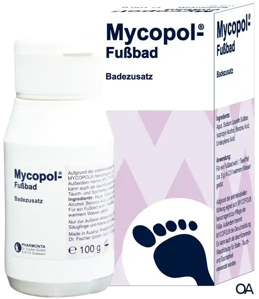 MYCOPOL Fußbad eignet sich aufgrund der antimikrobiellen Wirkung hervorragend zur Pflege der Füße. Außerdem hemmt MYCOPOL® die Geruchsbildung. Es kann auch als desinfizierende Waschlösung für Bade-, Tauch- und Sportartikel verwendet werden.