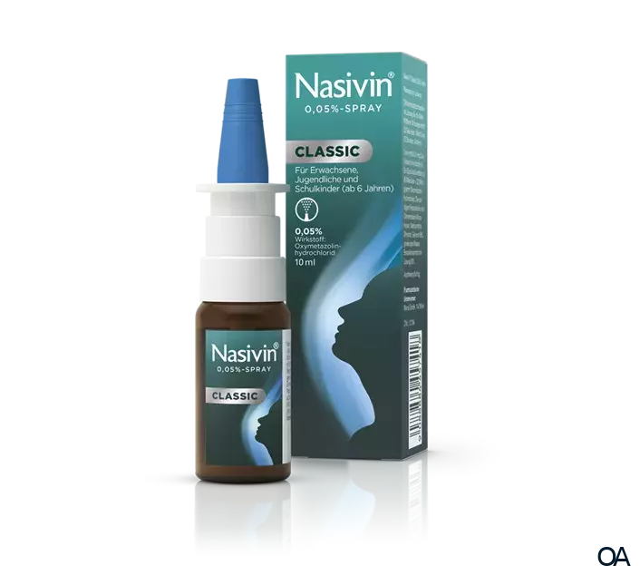 Nasivin Classic 0,05 % Spray ist ein Arzneimittel zur örtlichen Behandlung des Schnupfens. Durch das Einsprühen der Lösung in beide Nasenlöcher schwillt die entzündete Nasenschleimhaut ab und die übermäßige Sekretabsonderung wird vermindert.
