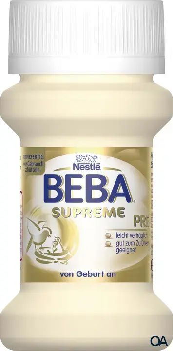 Beba Supreme trinkfertig: Die premium Anfangsmilch, speziell auf die Bedürfnisse Ihres Neugeborenen abgestimmt. Mit wertvollen Nährstoffen wie DHA und ohne Palmöl. Ideal für unterwegs und nachts.