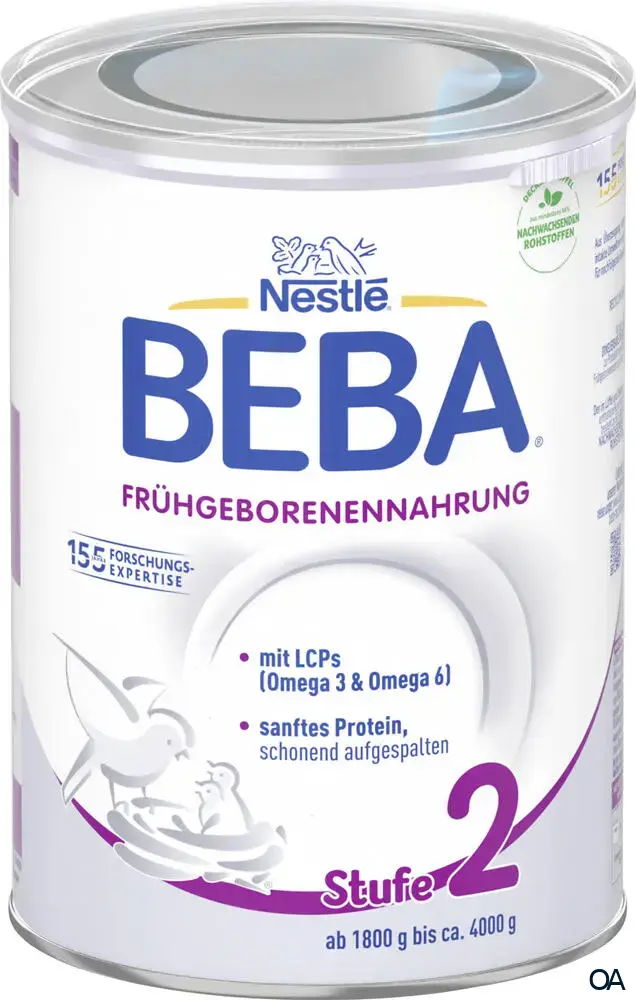 Nestlé BEBA Frühgeborenennahrung Stufe 2 ist genau auf die besonderen Ernährungsbedürfnisse deines frühgeborenen Babys nach Klinikentlassung abgestimmt (ab 1800 g bis ca. 4000 g) und unterstützt seine gesunde Entwicklung bis zum Erreichen des gewünschten Körpergewichtes.