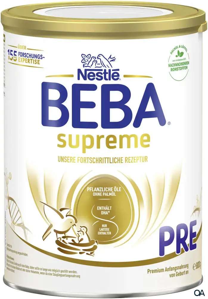 - Bei bestehender Kuhmilcheiweiß-Allergie oder dem Verdacht auf eine solche darf Nestlé BEBA SUPREME PRE nicht gegeben werden. Treten allergieverdächtige Symptome bei Ihrem Baby auf, sollten Sie Ihren Kinderarzt hinzuziehen.