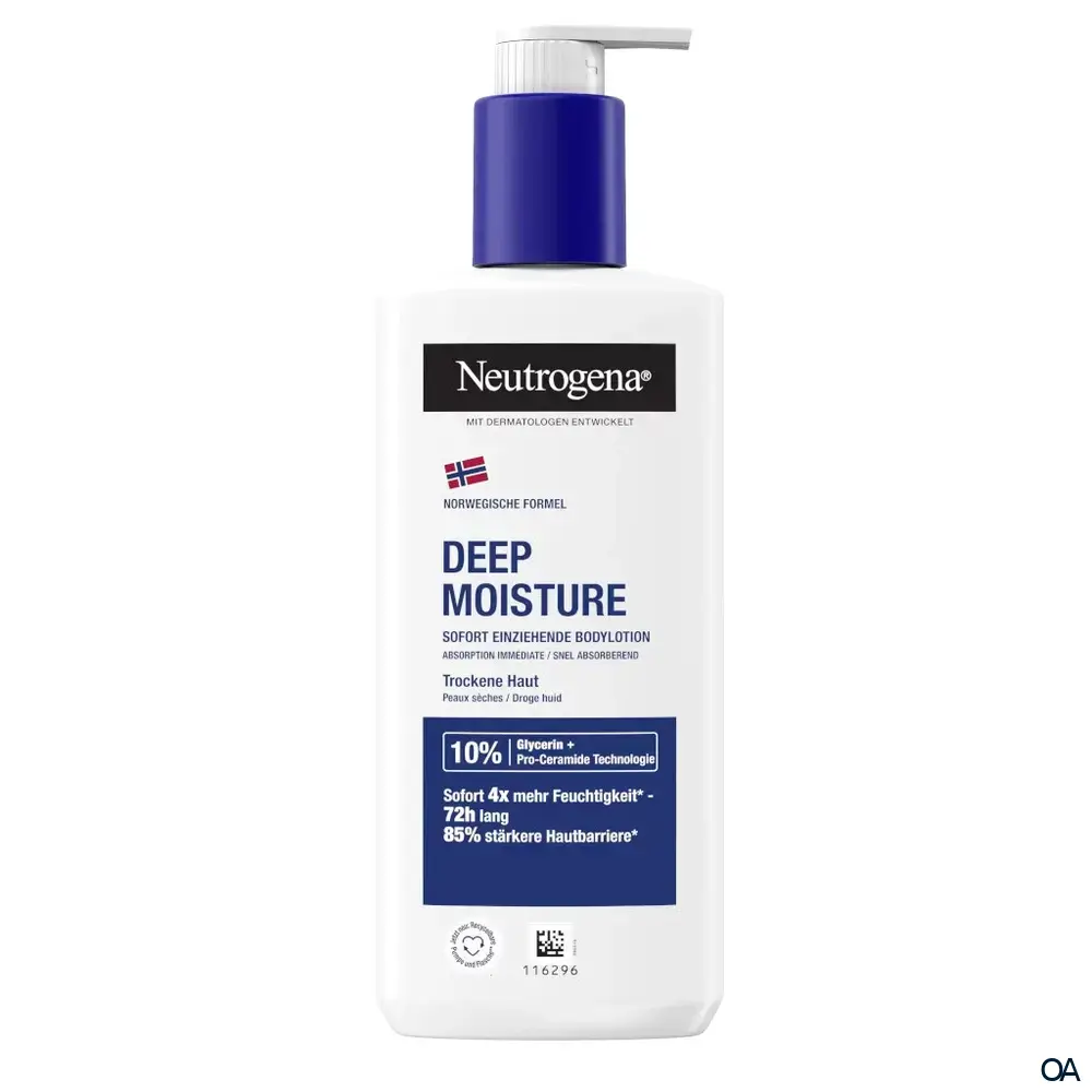 - Die besondere Neutrogena Deep Moisture Bodylotion für trockene Haut mit der norwegischen Formel stärkt die Hautbarriere & spendet sofort 4x mehr Feuchtigkeit* - für 72h intensive Feuchtigkeit.