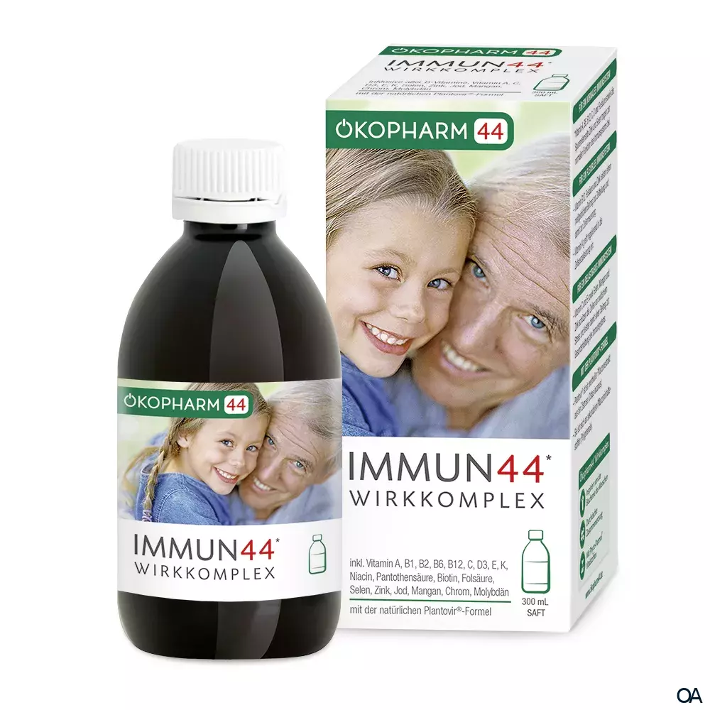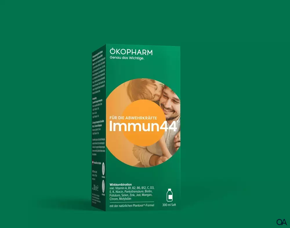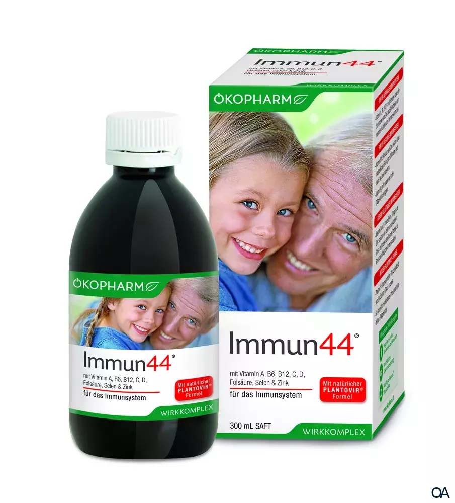 Ökopharm® Immun44* Saft ist ein Nahrungsergänzungsmittel zur Stärkung des Immunsystems. Er enthält Vitamin C, Zink, Vitamin A, Vitamin B6, Folsäure, Selen und Cistus Incanus Extrakt. Ist gut verträglich und wohlschmeckend im Geschmack.
