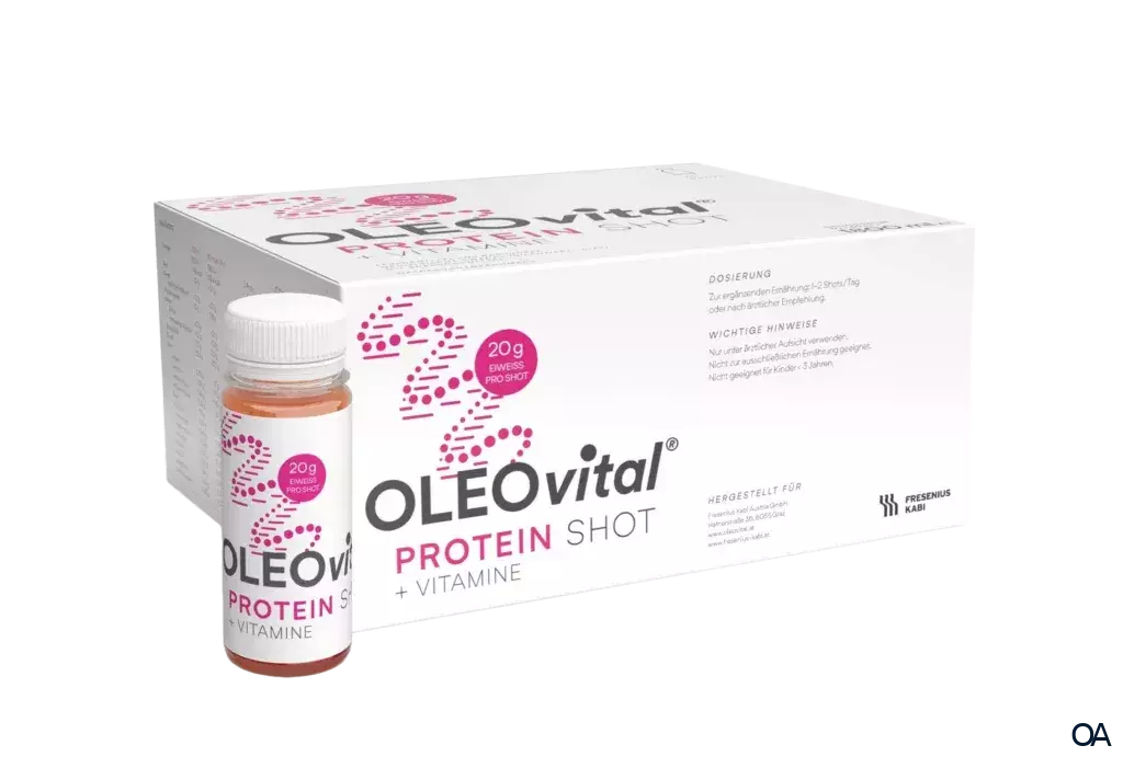 Der OLEOvital® Protein Shot + Vitamine ist ein Lebensmittel für besondere medizinische Zwecke (bilanzierte Diät), zum Diätmanagement bei bestehender oder drohender Mangelernährung, insbesondere bei erhöhtem Eiweißbedarf, wie beispielsweise bei der Dialyse, in der Onkologie oder Chirurgie sowie bei limitierter Flüssigkeitstoleranz.