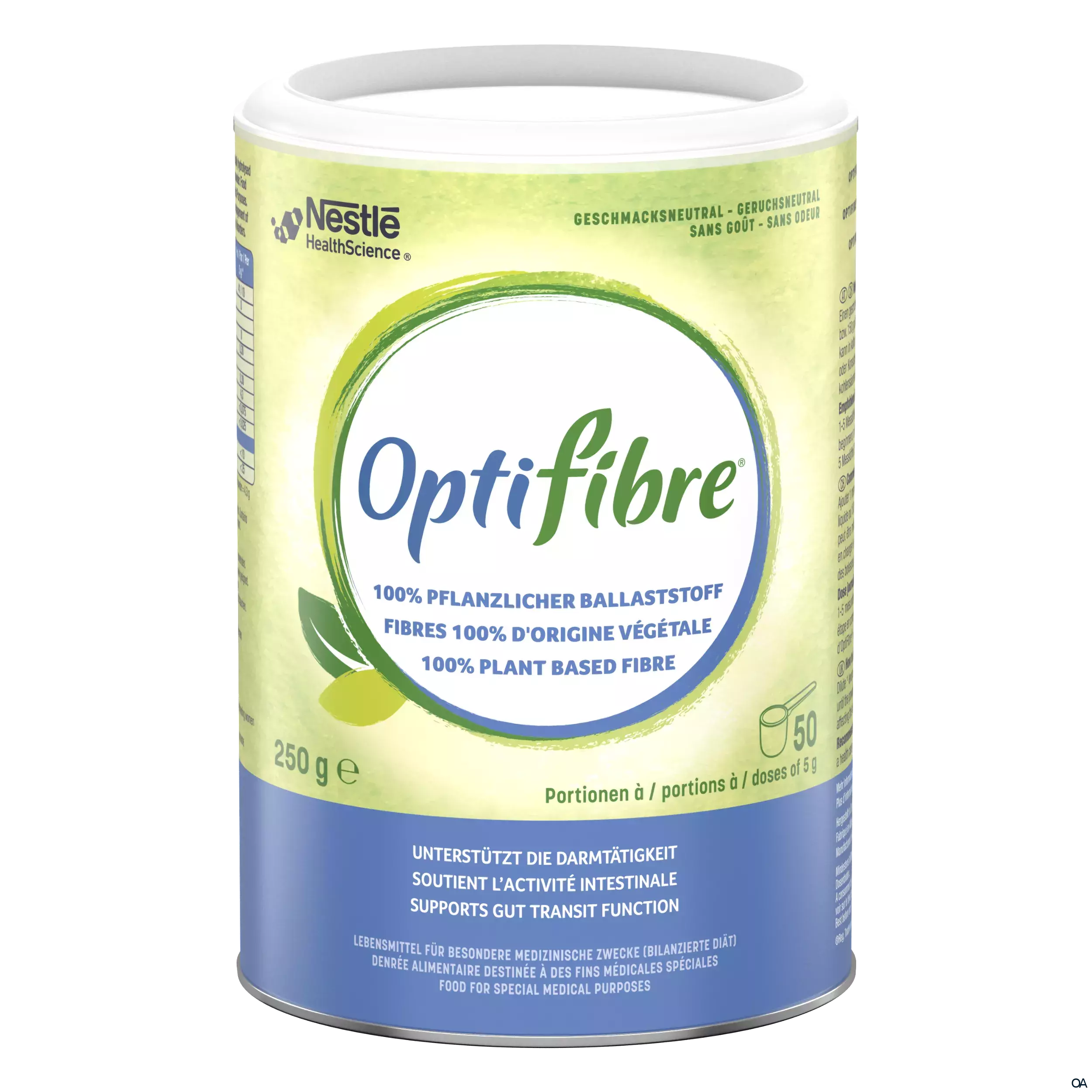 - OptiFibre ist geschmacksneutral und kann daher in allen Flüssigkeiten verrührt werden. Die exakten Dosierungsanweisungen nach Alter und Art der Anwendung finden Sie auf der Verpackung des Produkts. Der Hersteller empfiehlt zum Start 1 Sachet bzw. 5 g OptiFibre Pulver pro Tag in ca. 200 ml Flüssigkeit zu verrühren. Zur weiterführenden bilanzierten Diät können täglich 1 - 5 Sachets eingenommen werden.