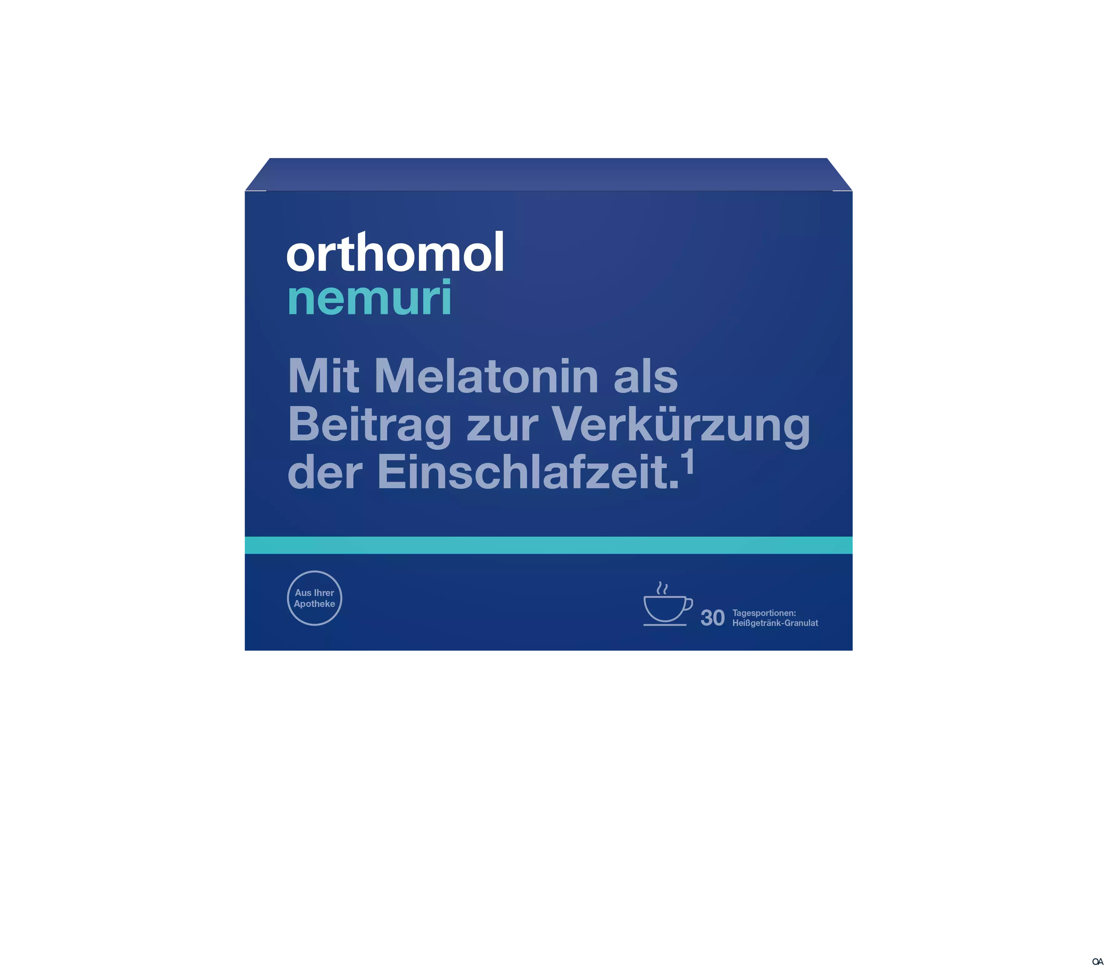 - Orthomol Nemuri ist ein Nahrungsergänzungsmittel. Es enthält Melatonin als Beitrag zur Verkürzung der Einschlafzeit. Mit Melissen-Extrakt, Hopfen-Extrakt, Glycin und L-Tryptophan.