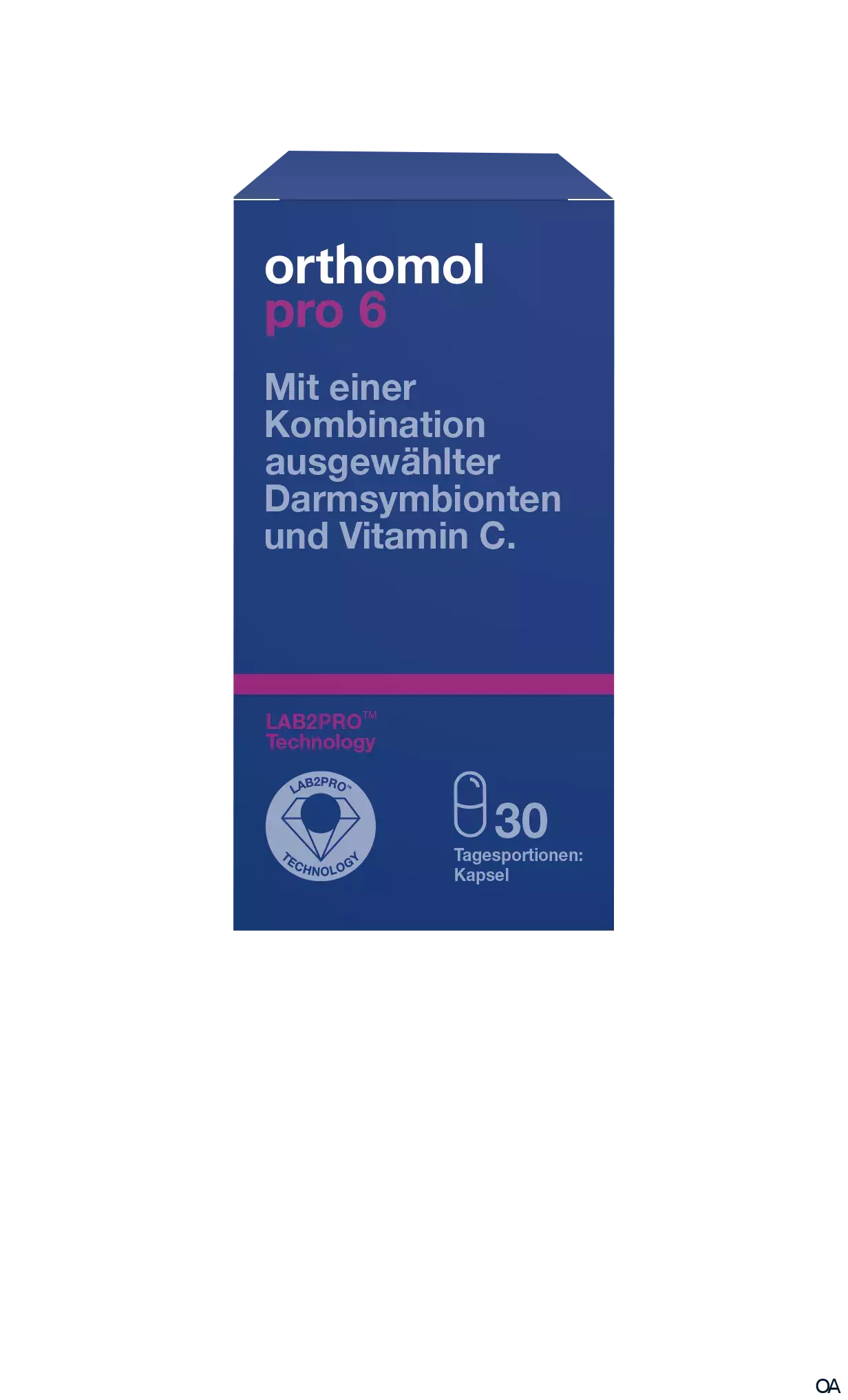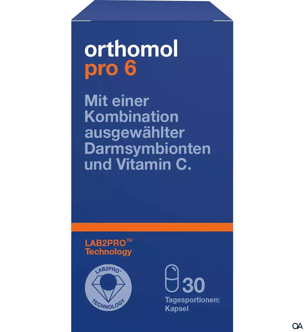 Orthomol Pro 6 Kapseln ist ein Nahrungsergänzungsmittel. Es enthält ausgewählte Darmsymbionten und Vitamin C. Zur Unterstützung des Darms, beispielsweise während einer Antibiotika-Einnahme, sowie des Immunsystems und des Energiestoffwechsels.