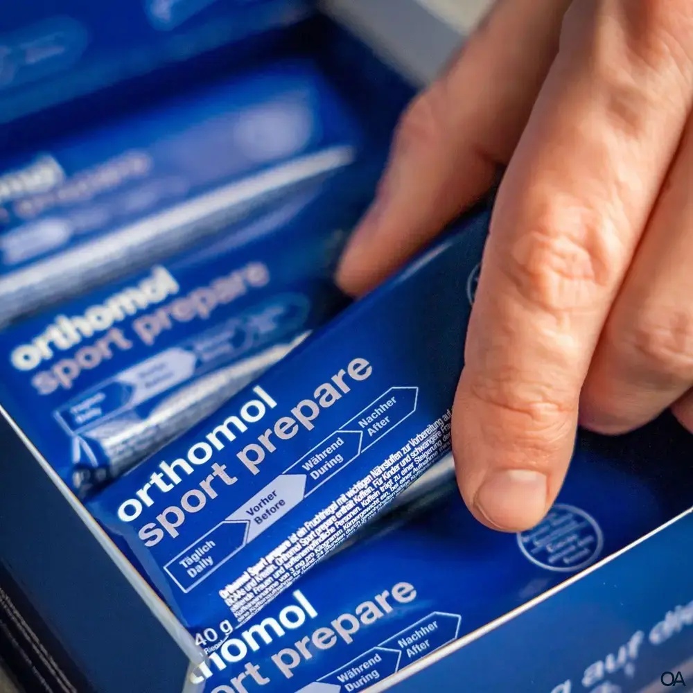 Kurz vor dem Wettkampf oder der Trainingseinheit ist die maximale Energiebereitstellung gefragt: Orthomol Sport prepare ist für die schnelle Aktivierung konzipiert und unterstützt die Leistungsfähigkeit.