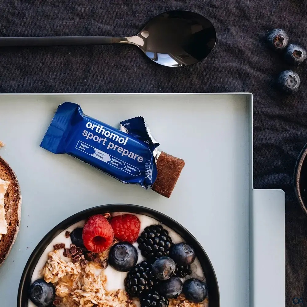 Orthomol Sport prepare ist ein Fruchtriegel mit wichtigen Nährstoffen zur Vorbereitung auf die sportliche Leistung. Orthomol Sport prepare enthält u. a. BCAAs und Kreatin. Der Riegel enthält Koffein.