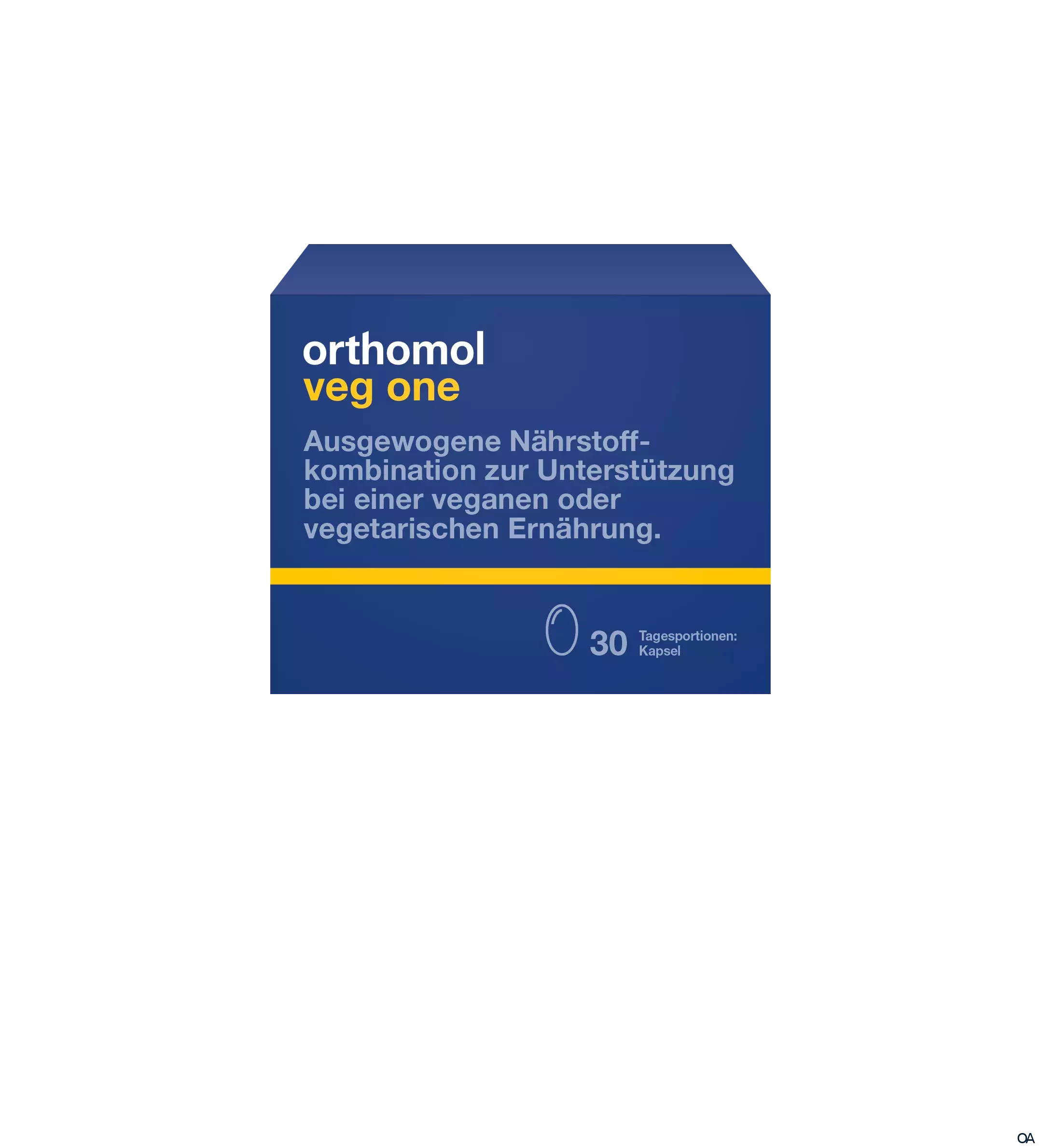 Bei Veganern und Vegetariern stehen vor allem Obst und Gemüse auf dem Speiseplan. Daher sind sie mit vielen Mikronährstoffen, wie z. B. Vitamin C und E oder Folsäure sowie sekundären Pflanzenstoffen im Allgemeinen besser versorgt als Mischköstler. Nährstoffe, die möglicherweise in nicht ausreichender Menge aufgenommen werden, wie Eisen, Zink, Omega-3-Fettsäuren und Vitamin D3, und bei rein veganer Ernährung Vitamin B12, Vitamin B2 und Calcium, können entsprechend zugeführt werden. Orthomol Veg one ist ein Nahrungsergänzungsmittel zur Unterstützung bei einer veganen oder vegetarischen Ernährung. Die gelatinefreie vegane Weichkapsel ist frei von Rohstoffen tierischen Ursprungs. Als Hüllenmaterial werden u. a. Maisstärke und Carrageen eingesetzt.