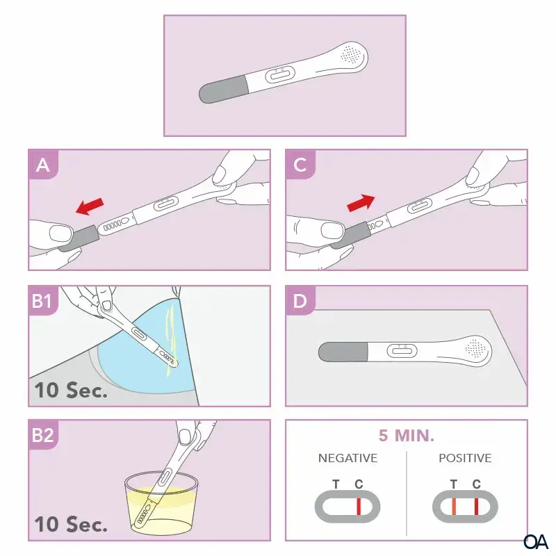 OVULATION LH TEST ist ein schnelles immunchromatographisches Gerät, das LH-Hormonspiegel über 25 mIE/mL erkennt.