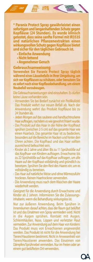 Der Paranix Kopflaus Repellent Spray ist klinisch nachweislich ein wirksamer Schutz gegen Kopfläuse. Der Spray kann auch unmittelbar nach einer Kopflausbehandlung verwendet werden, um einen erneuten Wiederbefall zu verhindern.