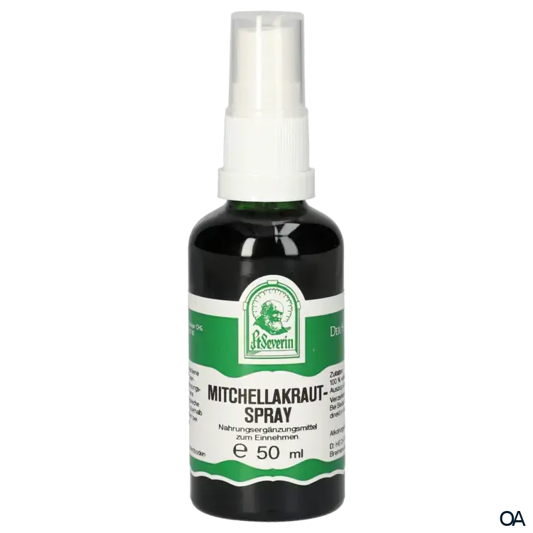 Der Pater Severin Mitchellakraut Spray ist ein Nahrungsergänzungsmittel nach alter Klosterrezeptur zum Einnehmen. Hergestellt aus einem hochwertigen wässrig/alkoholischen Auszug aus Mitchellakraut.