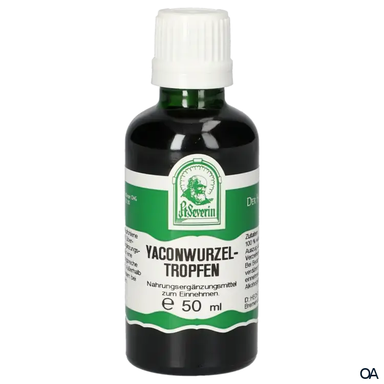 Zusammensetzung: Yaconwurzeltropfen enthalten einen wässrig/alkoholischen Auszug aus der Yaconwurzel. Der Auszug wird nach Vorgaben des Arzneibuches im Verhältnis 1:5 hergestellt. Alkoholgehalt: 66 % Vol.