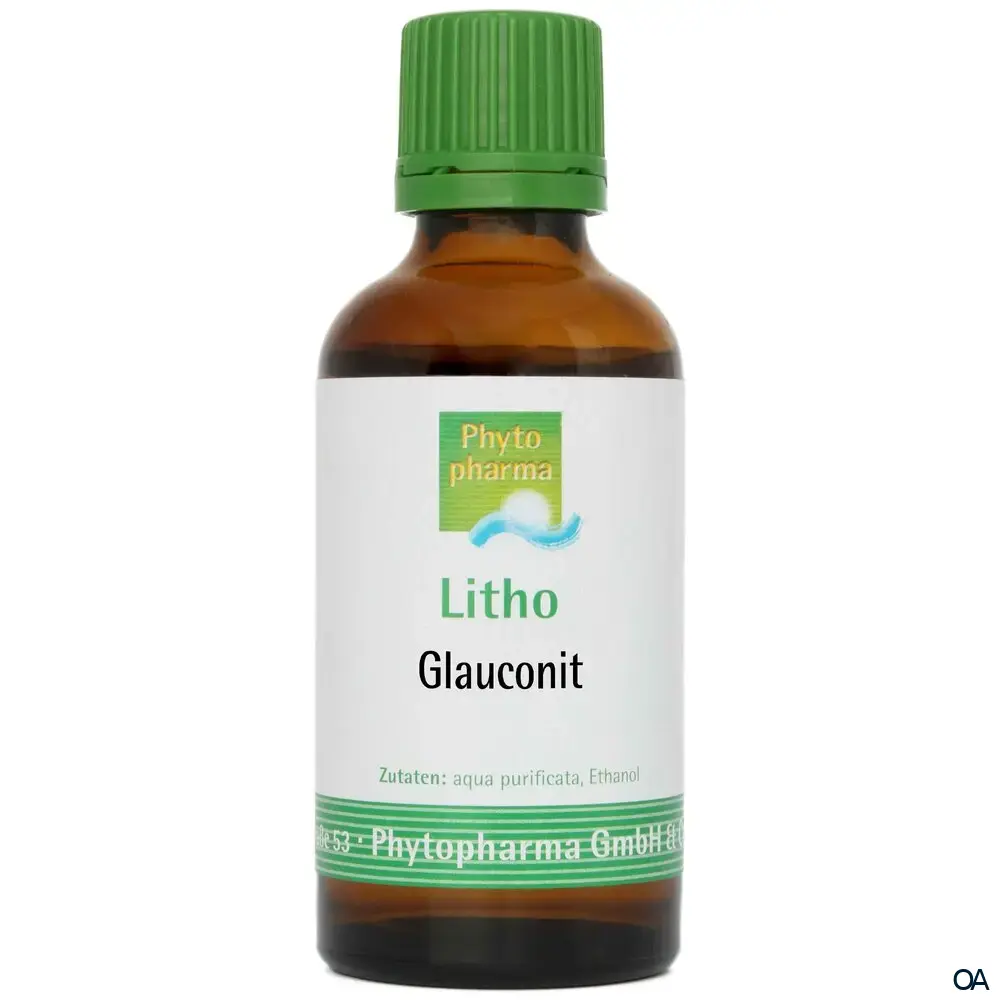 Die Phytopharma Lithotherapie Glauconit Tropfen enthalten in Alkohol gelöstes Eisen-Aluminiumsilicat natürlichen Ursprungs.