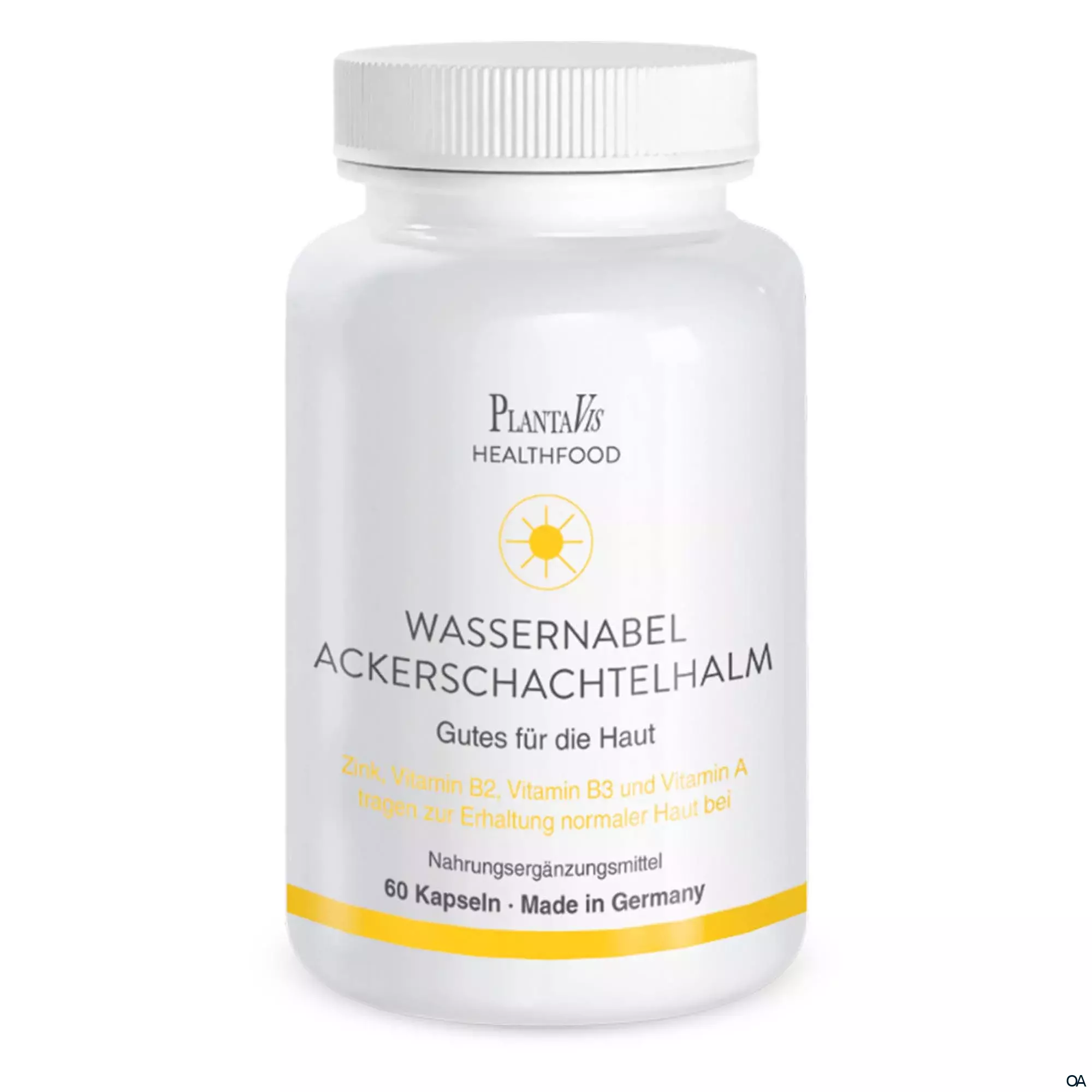PlantaVis Wassernabel Ackerschachtelhalm Kapseln sind ein Nahrungsergänzungsmittel für die normale Hautfunktion. Enthalten Zink, Vitamin B2, Vitamin B3 und Vitamin A zur Erhaltung normaler Haut.
