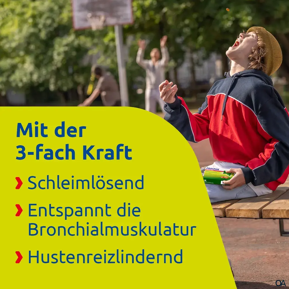 Mit der Kraft des Efeus löst Prospan den Schleim, befreit die Bronchien und beruhigt so den Husten. Prospan ist rein pflanzlich, gut verträglich, für jedes Alter geeignet und in verschiedene Anwendungsformen erhältlich. Gerade unterwegs, z.B. in der U-Bahn oder in einem Meeting ist Husten besonders unangenehm.