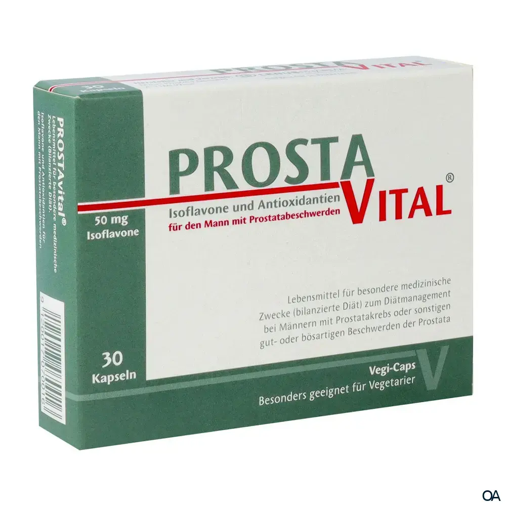 Rund ein Drittel der Männer über 50 Jahren sind von Prostataproblemen betroffen. Veränderungen der Prostata stehen eindeutig im Zusammenhang mit den Ernährungsgewohnheiten. In Asien erkranken aufgrund einer ballaststoffenreicheren Ernährung deutlich weniger Männer an Prostatakrebs als in Europa und den USA. Auch Isoflavone und anderen Mikronährstoffe können aufgrund ihrer vielseitigen Wirkweise einer gut- oder bösartigen Vergrößerung der Prostata entgegenwirken. Die in Prosta Vital® Kapseln enthaltenen Isoflavone des Rotklees, Selen, Vitamin E und Lycopin bieten einen umfassenden antioxidativen Schutz für die Prostatazellen und wirken bösartigen Vergrößerungen der Prostata entgegen.