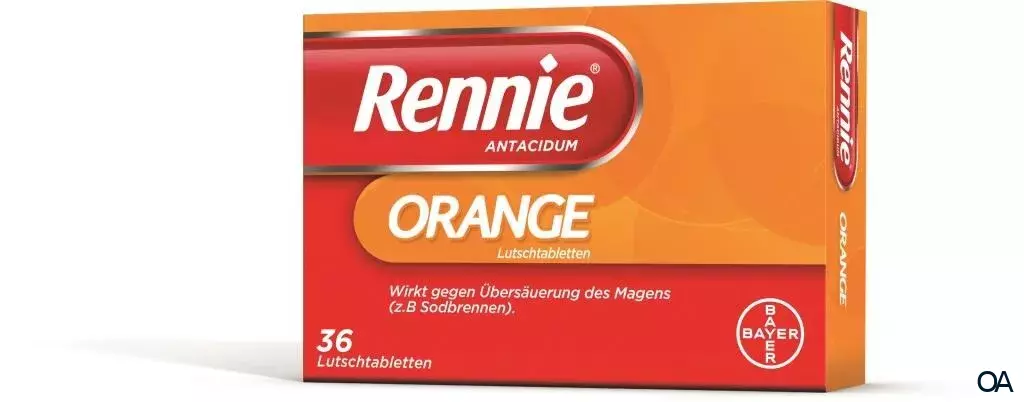 Rennie® Antacidum Orange Lutschtabletten können gegen Beschwerden bei überschüssiger Magensäure (z.B. Sodbrennen) eingenommen werden. Sie neutralisieren die Magensäure und wirken so gegen eine Übersäuerung des Magens.